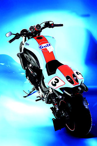 200 PS Maximalleistung. Fussraster von Raask, Armaturen von Moto gadget,
