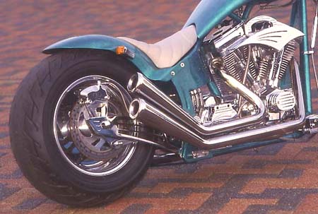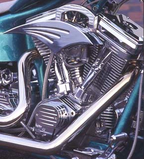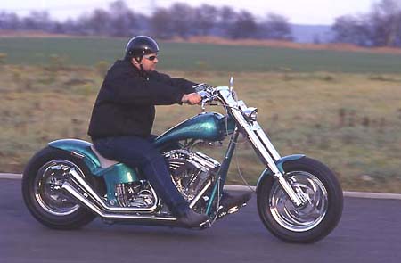 Gut 40.000 Euro durfte der stolze Kunde für die Mirage auf die Ladentheke blättern. Der Gegenwert ist ein unverwechselbares und einmaliges Custom-Bike. Stärker und schneller als jede Serien-Harley und dazu mit tadellosem Fahrwerk und einer perfekten Bremsanlage ausgestattet. Im Sprint zeigt die Mirage die Zähne, bei Lust auf Speed klettert die Tachonadel sogar auf über 180 Sachen. Theoretisch. Im Alltag ist aber der Weg das Ziel. |
