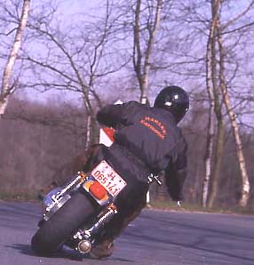 Die Vorderpartie setzt sich aus Ceriani Upside-down Gabel, Speichenrad mit 3.00 x 17 Akront-Alu-Felge, 110/70 ZR 17 Metzeler Pneu, gelochten 290er Bremsscheiben mit Vierkolben-PM-Sätteln und W&F Radabdeckung zusammen. Der Rechteckscheinwerfer und die lenkerfeste Verkleidung stammen von BMW, die Blende untendrunter hat Warneke selbst gemacht. Das Tempo kann der Pilot vom HD-Tacho ablesen, und mit welchen Touren die Kurbelwellen gerade rotiert, signalisiert ein Kröber-Drehzahlmesser. Die Fäuste umklammern eine W&F SuperBar-Lenkstange, der Allerwerteste ruht auf einem W&F-Sattel. |