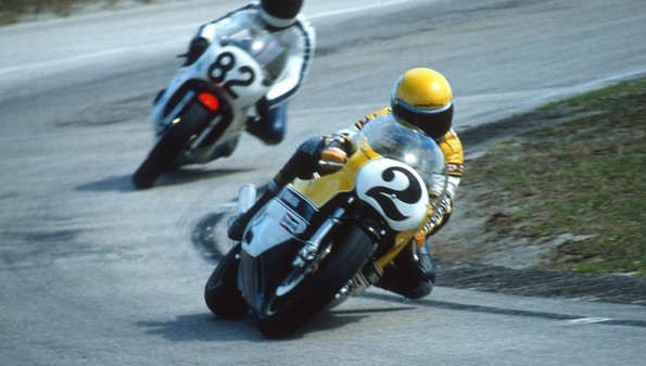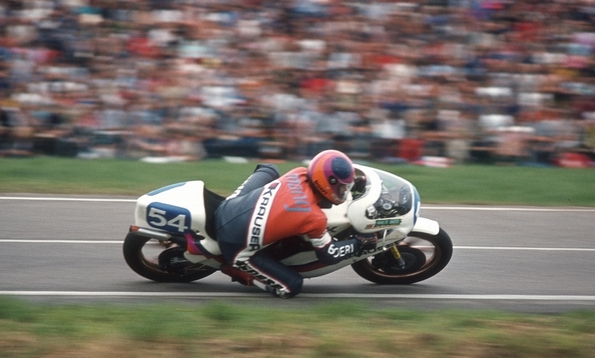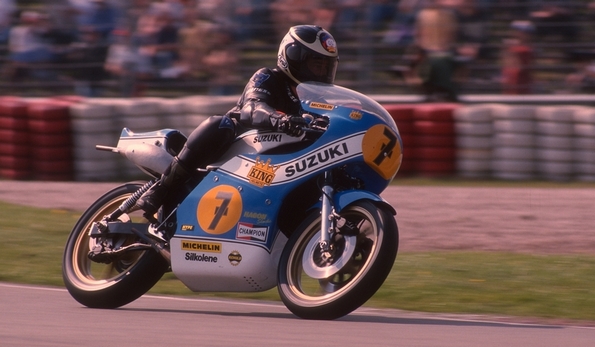 Englischer zweifacher 500er Weltmeister auf Suzuki RG500.