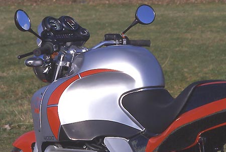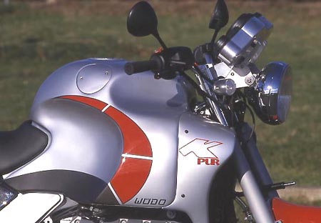 Bei der Studie "K-PUR" kam es dem Kasseler BMW Experten aber nicht auf maximale Spitzenleistung an. In erster Linie ging es ihm um eine ausgewogene Fahrbarkeit mit ordentlich Bums aus dem Keller und kräftigen Durchzug im mittleren Drehzahlbereich und eine guten Sitzposition. Und da bekanntlich das Auge mit fährt, galt es natürlich auch die Optik zu verändern. Verkleidung, Lenker und Sitzbank wanderten ins Gebrauchtteilelager. |