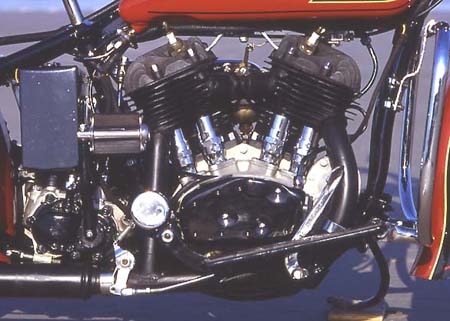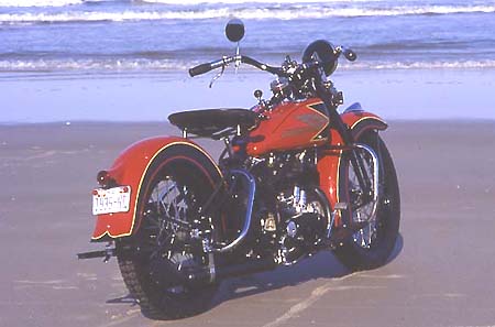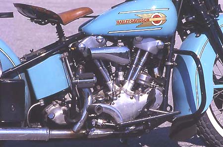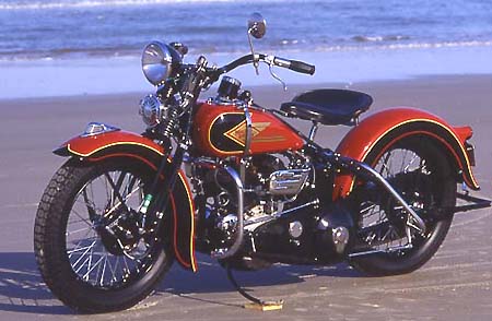 Das Jahr 1936 ging gleich zweimal in die Harley-Davidson Geschichte ein. Die Traditionsschmiede in Milwaukee präsentierte das brandneue Modell E, die sogenannte "Knucklehead". Ein vollkommen neu entwickelter 40 PS starker 1000 Kubik V-Motor brachte die "Sixty-One" auf Trab. Erstmalig in der bereits 33 Jahre alten Firmenhistorie hatte man die Zylinderköpfe mit hängenden Ventilen (ohv-System) ausgestattet. Doch das Paradepferd litt zunächst unter Kinderkrankheiten. Alteingesessene Harley-Treiber hielten sowieso nichts von dem neumodernen Kram. Sie standen weiterhin auf den bewährten Maschinen mit Seitensteuerung. Und so wurde 1936 die VLH "Flathead", von der "Motor Company" eigentlich gar nicht gewollt, zwangsläufig zum Topmodell. |