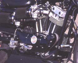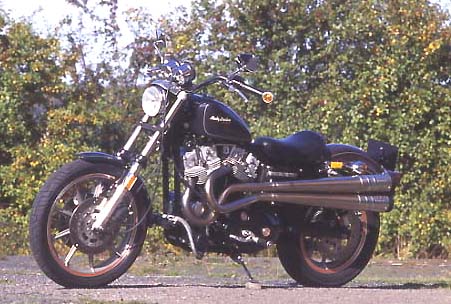 Motor Fahrtwindgekühlter OHV-Zweizylinder-Viertakt-V-Motor, Hubraum 997 ccm, Bohrung x Hub 81 x 96,8 mm, Verdichtung 9:1, Leistung 70 PS bei 5600/min, vier untenliegende Nockenwellen, XR-Zylinderköpfe, zwei Dell'Orto-Rundschiebervergaser mit Beschleunigerpumpen, 36 mm Durchlass, K&N-Trockenluftfilter, Supertrapp-Anlage, kontaktlose-Zündanlage, 12 Volt-Anlage, E.-Starter |