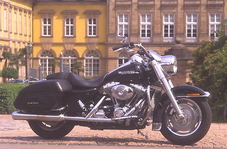 Im Reigen moderner Plastikbomber, Hypersportler und Geländehüpfer oder was es sonst noch so auf dem Markt gibt, nimmt eine Harley-Davidson immer noch eine Sonderstellung ein. Mit ihr durch die Gegend zu fahren, ist was Besonderes. Die Road King schafft es hervorragend, einem das Gefühl der Einstellung des amerikanischen "Way of Life" zu vermitteln. |