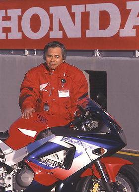 Motor: Wie ein Schneeball wurde das Triebwerk komprimiert. Das Kurbelgehäuse ist nicht länger oder höher als bei der CBR600F. Mit 67 Kilo wiegt das Fireblade-Herz nur 12 Kilo mehr als der 600er Inline-Four. Um Baubreite zu sparen, wurden die Zylinder extrem zusammen gerückt. Zylinder und oberes Motorgehäuse sind einteilig gegossen. Die Kurbelwelle ist mit 427 mm Baubreite sehr schmal bemessen und kommt mit nur fünf 34er Gleitlagern aus. Das spart Material, Gewicht und Reibungsverluste. Lichtmaschine, Primärtrieb-Stirnrad, Kupplung, Getriebe - überall wird das Bemühen um Leichtbau und geringe Abmessungen deutlich. Gleichzeitig wird der Leistungsentfaltung größte Sorgfalt gewidmet. 124 PS, mit fahrfreundlichem Drehmomentverlauf gepaart, heben die Fahrdynamik des Leichtgewichts auf ein höchst verblüffendes Niveau. Fahrwerk: Der Rahmen ist aus Alu-Kastenprofilen gefertigt, das Triebwerk wird beidseitig umspannt. Die Lastverteilung beträgt vor ne 51,5 Prozent, zugunsten erhöhter Vorderrad-Lenkpräzision. Rahmenheck verschraubt. Hinten verdrehsteife Alu-Schwinge mit Pro-Link-Hebelumlenkung. Die Telegabel ist technologisch ein Leckerbissen: mit 45 mm Standrohr-Durchmesser massiv dimensioniert, jedoch extra dünnwandig konstruiert, um das Gewicht niedrig zu halten. Dazu wählte Baba ein 16 Zoll-Vorderrad, das geringe Kreiselkäfte aufbaut und das Handling beim Einlenken in Kurven leichter gestaltet. Ausstattung: Funktionalität und Leichtbau bestimmen jedes Detail. Die Verkleidung (mit Schnellverschlüssen) passt wie eine zweite Haut, die Löcher in Bug und Schnauze optimieren das Handling im Highspeed-Bereich. Lenker und Cockpit sind rennsportorientiert, der Drehzahlmesser (in Schaumstoff gebettet) liegt zentral im Blickfeld. Die Kupplung wird mechanisch betätigt, ein Chokehebel ist im Cockpit zu finden. Daten:
