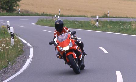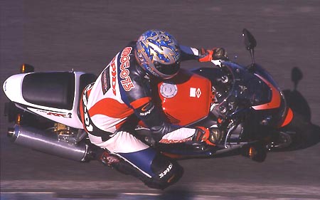 Weiterentwicklung unter dem Motto "Refined Manoeuvrability". Dazu passen die neuen Bridgestone BT 56-Reifen mit Monospiral-Radialtechnik. Bei der Präsentation auf dem Circuit Catalunya bei Barcelona verdienen sich Handling und Stabilität von Hondas Topp-Sportler bei hohen Geschwindigkeiten Bestnoten. |