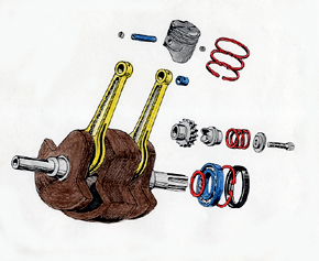 Wälzlagern, die Pleuelfüße in Nadellagern. Für den Zündfunken