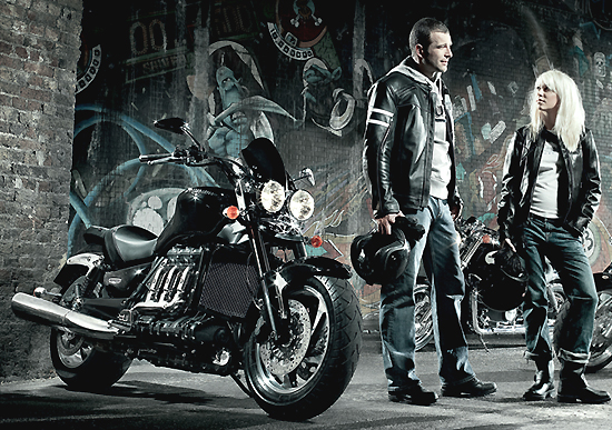 Auch wenn es sich wie eine abgedroschene Phrase anhört: Die Triumph Rocket III Roadster ist ein absolut einzigartiges Motorrad, das nicht zuletzt wegen des legendären Dreizylinder-Aggregats eine unerhörte physische Präsenz ausstrahlt. Mit dem 2294 cm3 großen Dreizylinder vertraut die Rocket III Roadster dem weltweit größten Serienhubraum im Motorradbau. Ihre enorme Drehmomentwelle von 221 Newtonmetern schon bei 2750 Kurbelwellenumdrehungen verhilft der Rocket III Roadster zu einem Fahrerlebnis, das seinesgleichen in der zweirädrigen Welt vergeblich sucht. Obwohl die Rocket III Roadster offiziell zur Triumph Cruiser-Baureihe zählt, überschreitet sie die Grenze zum Sportler. Die weiter vorn montierten Fußrasten samt der aufrechten Fahrerhaltung bringen die Roadster in Richtung Streetfighter und sorgen für ein solch einmaliges Fahrgefühl, das jeder Motorradfahrer mindestens einmal in seinem Zweiradleben genossen haben muss. Dank ihrer Ergonomie beschert die Roadster ein komplett anderes Fahrgefühl als jede andere Rocket III, und zwar eines, das die Kurvenqualitäten betont. Dank der bequemen Bettung der gesamten Besatzung und einer komfortablen und gut kontrollierbaren Heckfederung stellen lange Distanzen eine leichte und gern absolvierte Übung für die Rocket III Roadster dar. Wie es sich für das Flaggschiff der Baureihe gehört, zeigt sich die Rocket III Roadster serienmäßig bestens ausgestattet mit einem umfangreichen Instrumentarium inklusive Benzinuhr, Ganganzeige und Zeituhr, einer 43 mm Upside-down-Gabel, einstellbarer Heckfederung, einem wartungsarmen Kardanantrieb und einer effektiven ABS-Bremsanlage. Vorn trägt die Rocket III Roadster die markanten Triumph-Doppelscheinwerfer zur Schau, die dieses imposante Motorrad – ansonsten ausschließlich in Schwarz und Chrom gehalten – nur noch beeindruckender machen. In 2011 gibt es die Rocket III Roadster in zwei neuen speziellen Farboptionen. Das beliebte Metallic-Phantom Black wird durch zwei auffällige Farbgebungen ergänzt: Phantom Red Haze und Phantom Blue Haze. Diese werden von Hand bei Triumph in Hinckley lackiert und enthalten besonders stark funkelnde Komponenten, die bei Sonnenlicht einen unglaublich intensiven Farbton herbei zaubern, der von fast Schwarz bis zu einem lebendigen Rot oder Blau changiert. Serienmotorrad mit dem weltweit größten Haubraum in Form des kultigen 2,3-Liter-Rocket-Dreizylinders Beste Ausstattung inklusive eines serienmäßigen ABS 221 Newtonmeter Drehmoment bei 2750 U/min Neue 2011er Farboptionen Phantom Red Haze und Phantom Blue Haze |