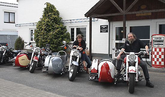 Manfred "Manni" Klocke und sein Geschäftspartner Uwe Brieler bekennen sich unumwunden zur Dreiradfraktion "MmB", Motorrad mit Beiwagen. Und dass für sie auch nur eine Motorradmarke, nämlich Harley-Davidson, für diesen Spaß in Frage kommt, braucht man nicht extra zu betonen. Ihren kleinen, aber feinen Betrieb in Rietberg/Westfalen nennen sie "V-Triebwerk". Hier werden seit Anfang der Neunziger Harleys repariert, gewartet, verbessert, umgebaut und mal an- und verkauft. Den Job als Vertragshändler möchten sie sich allerdings nicht antun. |