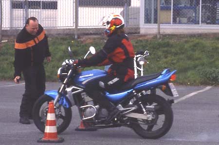 Motorradfahrer mit ihren ABS-Bikes und einer zusätzlichen Integral- oder Kombi-Funktion absolvieren das Bremstraining selbstverständlich von