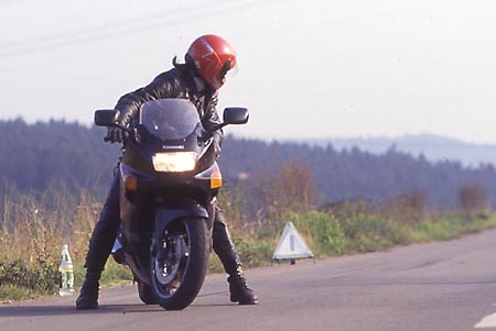 km/h, sowie Vollbremsung nur mit der Vorderradbremse aus 30, 50 und 70 km/h. Die Kür für den ABS-Experten sind danach die Vollbremsungen