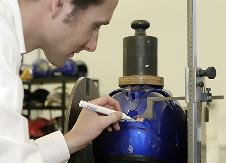 gemäß ECE-Norm R 22.05. Neben dem Unfallschutz prüften