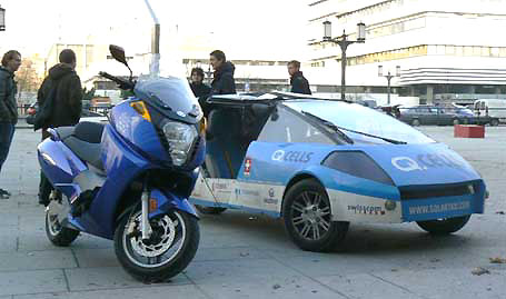 Auf Einladung von Louis Palmer und Thomas Gottschalk (nicht der Moderator) trafen sich das Solartaxi und Vectrix zum elektrischen Plausch in der Hauptstadt. Es gab viel zu berichten, hat der Abenteurer aus der Schweiz doch gemeinsam mit seinem Mechaniker die Welt allein mit der Kraft der Sonne umrundet. Auf dem Beifahrersitz saßen während der 17 Monate u. a. UNO-Generalsekretär Ban KiMoon oder der amerikanische Showmaster Jay Leno. |