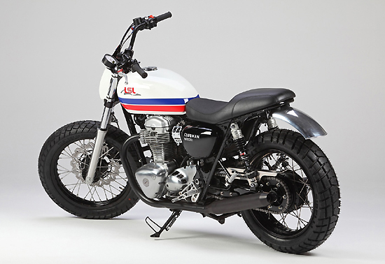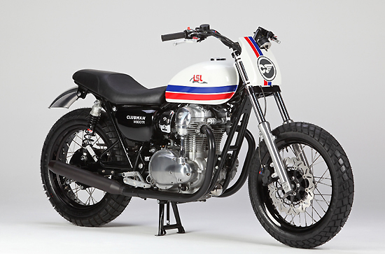 Flat Track Sitzbank, kurzer Alu-Kotflügel hinten Speichenräder mit