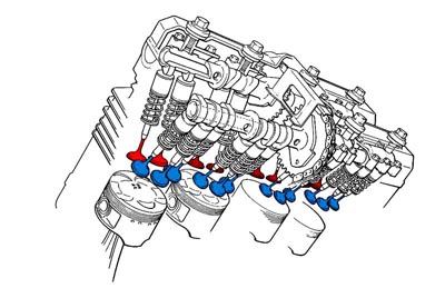 Legen die Motoreningenieure bei der Konstruktion eines Triebwerkes größten Wert darauf, dass alle beweglichen Bauteile mit möglichst wenig Spiel laufen (Toleranzen werden in Hundertstel gemessen), ist zwischen dem Ventil und seiner Betätigung ein gewisses Spiel nicht nur erwünscht, sondern sogar nötig. Man spricht vom "Ventilspiel". |