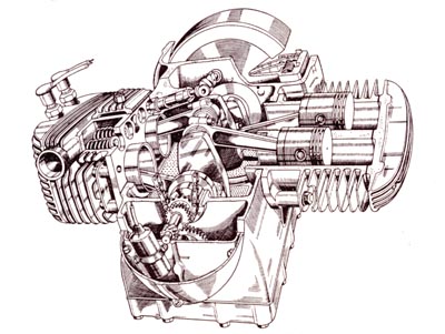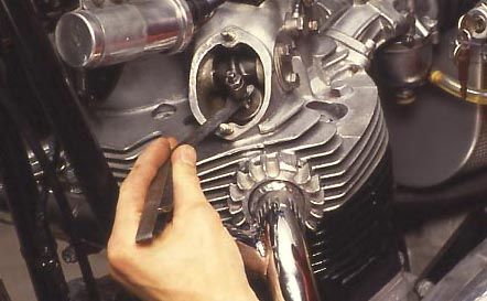 Wer das Ventilspiel selber einstellen will, benötigt außer gut sortiertem Werkzeug nur noch eine Fühlerlehre. Für diese Arbeit muss das Triebwerk abgekühlt sein, nur in Ausnahmefällen wird das Spiel bei warmem Motor kontrolliert. Da beim Abnehmen des Ventildeckels die Dichtung beschädigt werden kann, ist es ratsam, vorher schon eine neue zu besorgen. Alte Dichtungsreste sind sorgfältig zu entfernen. Um für diese Wartungsarbeit die Kurbelwelle besser drehen zu können, empfiehlt es sich, die Zündkerzen herauszudrehen. Grundsätzlich darf nur an der Kurbelwelle, nie aber an der Nockenwelle gedreht werden! Damit man beim Einstellen von Mehrzylindermotoren nicht durcheinander kommt, sollte man mit dem ersten Zylinder beginnen. Die Kurbelwelle wird nun so gedreht, dass der Kolben auf "OT- Zündung" steht. In dieser Position sind Ein- und Auslassventil geschlossen. |